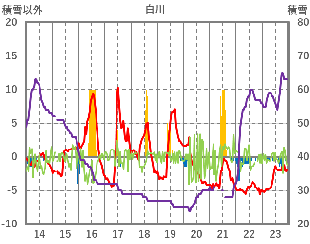 | 日 | 時 | 気温 | 降水 | 風向/風速 | 日照 | 積雪 | 降雪 |