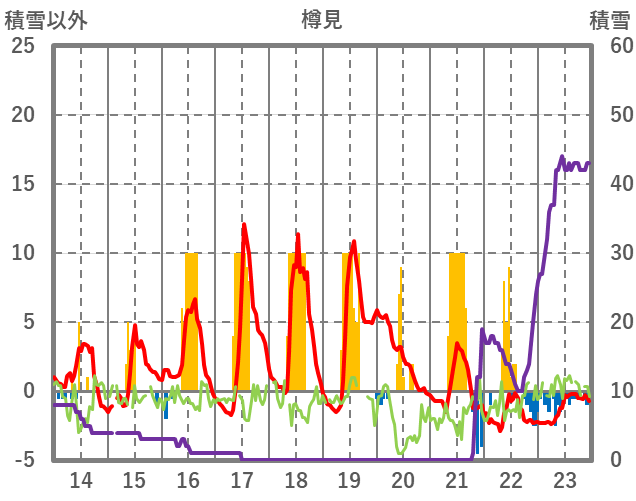 | 日 | 時 | 気温 | 降水 | 風向/風速 | 日照 | 積雪 | 降雪 |