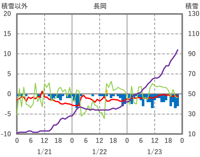 | 日 | 時 | 気温 | 降水 | 風向/風速 | 日照 | 積雪 | 降雪 |