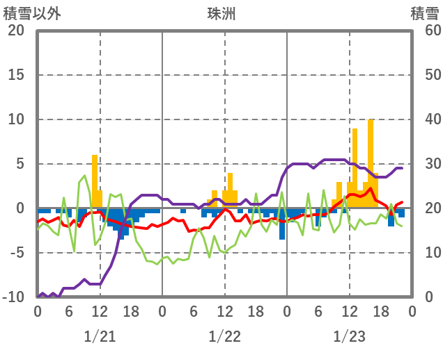 | 日 | 時 | 気温 | 降水 | 風向/風速 | 日照 | 積雪 | 降雪 |