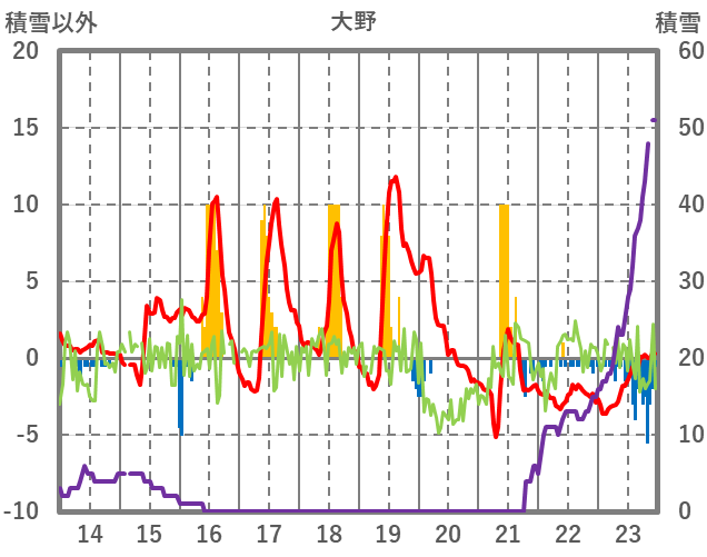 | 日 | 時 | 気温 | 降水 | 風向/風速 | 日照 | 積雪 | 降雪 |