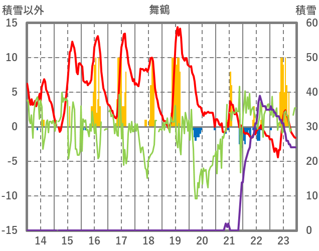 | 日 | 時 | 気温 | 降水 | 風向/風速 | 日照 | 積雪 | 降雪 |