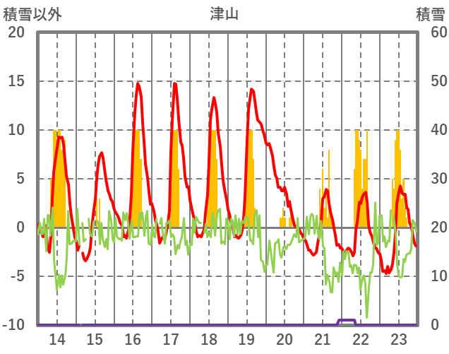 | 日 | 時 | 気温 | 降水 | 風向/風速 | 日照 | 積雪 | 降雪 |