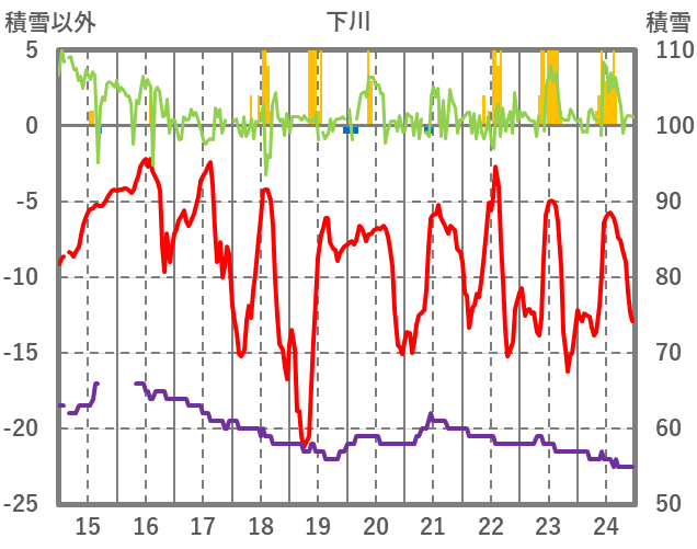 | 日 | 時 | 気温 | 降水 | 風向/風速 | 日照 | 積雪 | 降雪 |