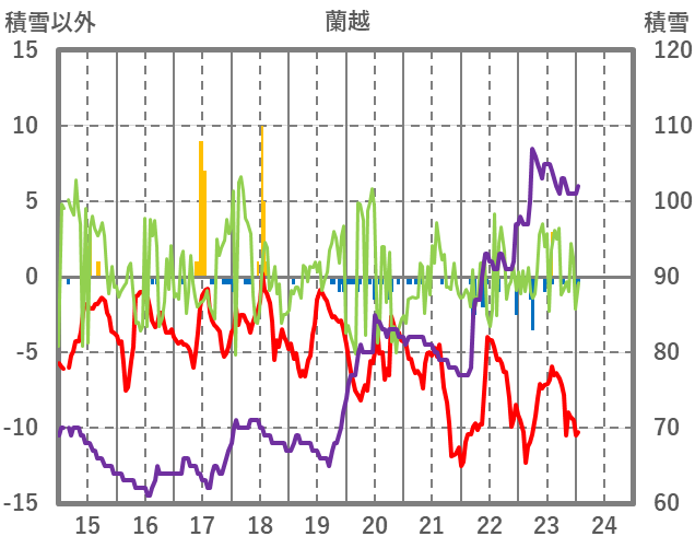 | 日 | 時 | 気温 | 降水 | 風向/風速 | 日照 | 積雪 | 降雪 |