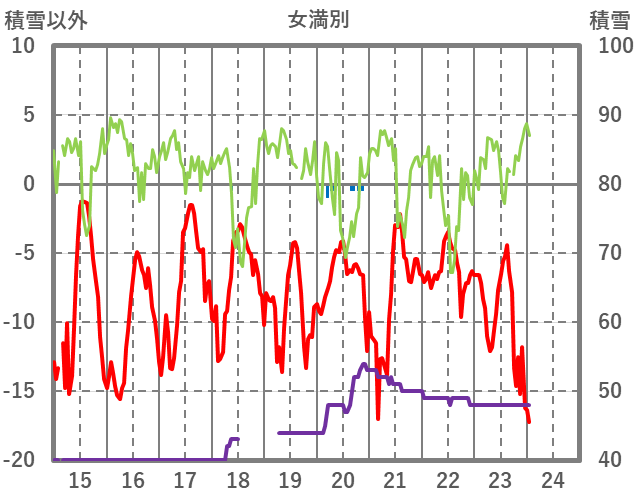 | 日 | 時 | 気温 | 降水 | 風向/風速 | 日照 | 積雪 | 降雪 |