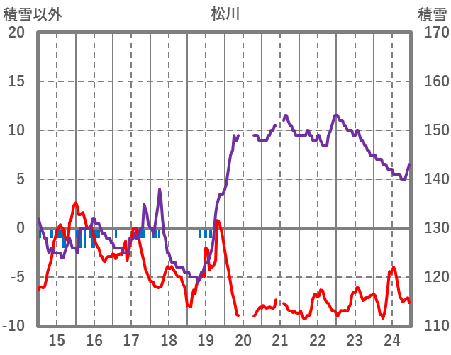 | 日 | 時 | 気温 | 降水 | 風向/風速 | 日照 | 積雪 | 降雪 |