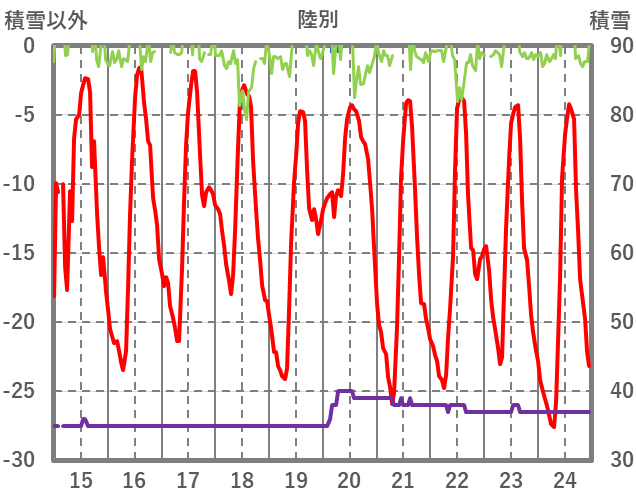 | 日 | 時 | 気温 | 降水 | 風向/風速 | 日照 | 積雪 | 降雪 |