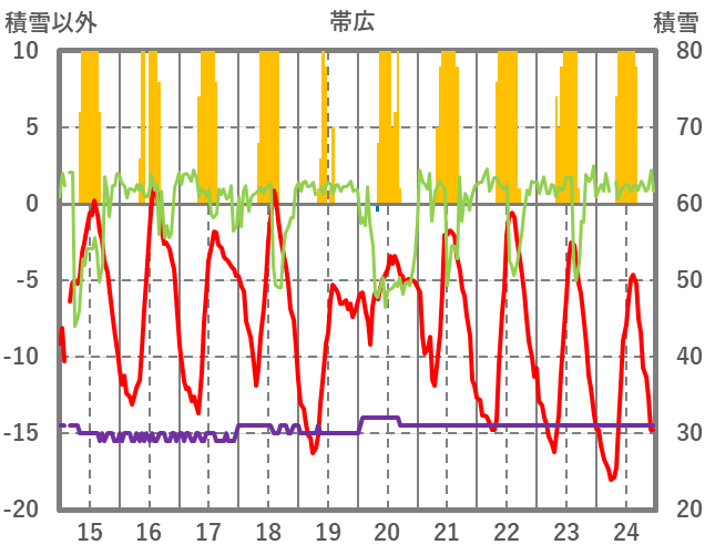 | 日 | 時 | 気温 | 降水 | 風向/風速 | 日照 | 積雪 | 降雪 |