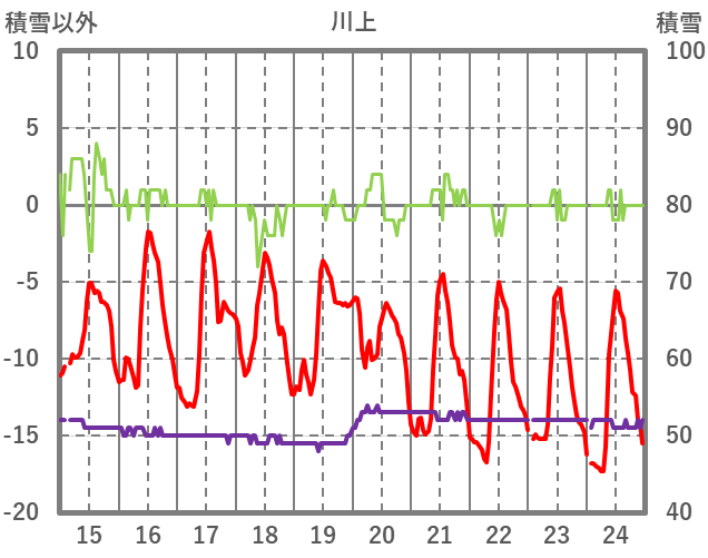 | 日 | 時 | 気温 | 降水 | 風向/風速 | 日照 | 積雪 | 降雪 |
