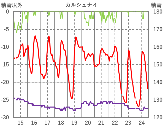 | 日 | 時 | 気温 | 降水 | 風向/風速 | 日照 | 積雪 | 降雪 |