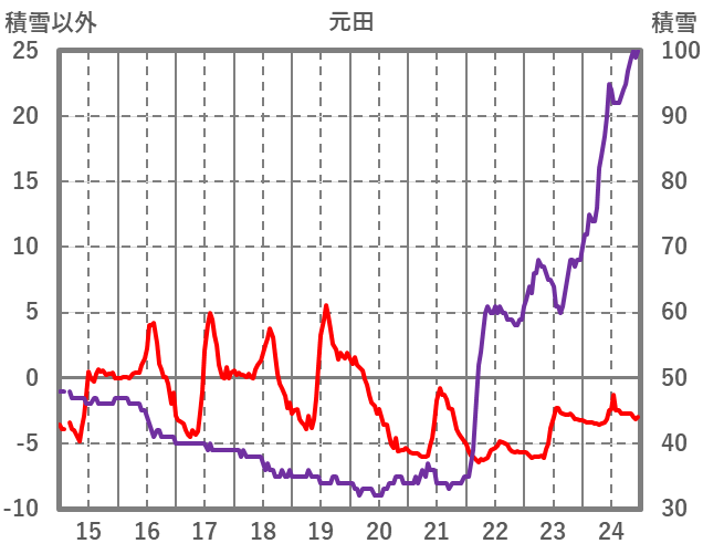| 日 | 時 | 気温 | 降水 | 風向/風速 | 日照 | 積雪 | 降雪 |