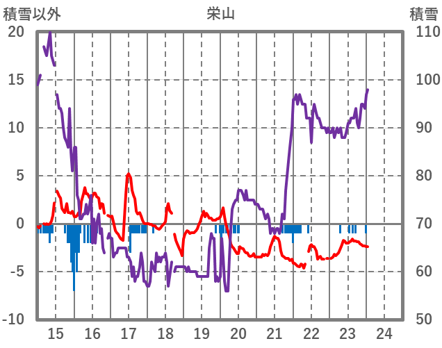 | 日 | 時 | 気温 | 降水 | 風向/風速 | 日照 | 積雪 | 降雪 |