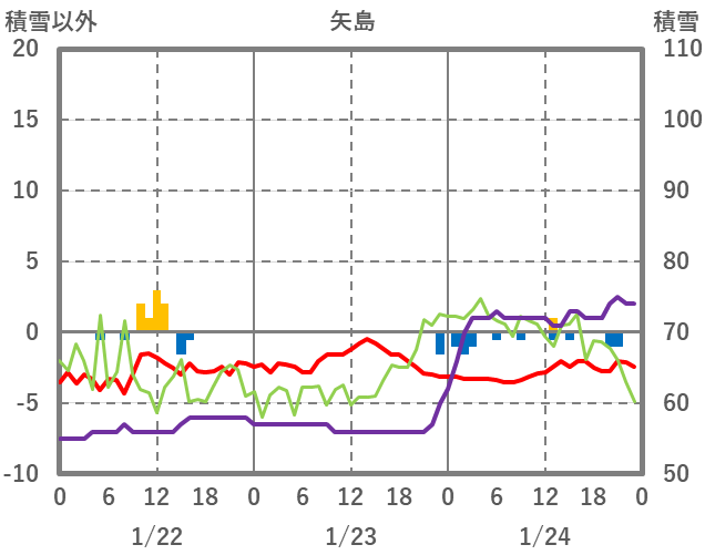 | 日 | 時 | 気温 | 降水 | 風向/風速 | 日照 | 積雪 | 降雪 |