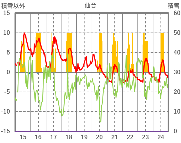| 日 | 時 | 気温 | 降水 | 風向/風速 | 日照 | 積雪 | 降雪 |