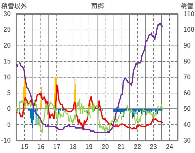 | 日 | 時 | 気温 | 降水 | 風向/風速 | 日照 | 積雪 | 降雪 |