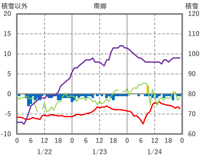 | 日 | 時 | 気温 | 降水 | 風向/風速 | 日照 | 積雪 | 降雪 |