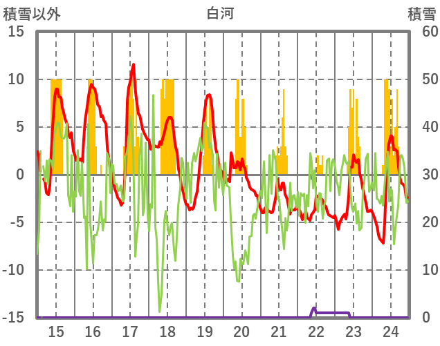 | 日 | 時 | 気温 | 降水 | 風向/風速 | 日照 | 積雪 | 降雪 |