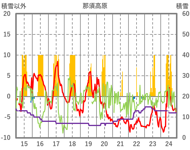 | 日 | 時 | 気温 | 降水 | 風向/風速 | 日照 | 積雪 | 降雪 |