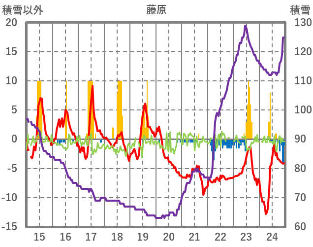 | 日 | 時 | 気温 | 降水 | 風向/風速 | 日照 | 積雪 | 降雪 |
