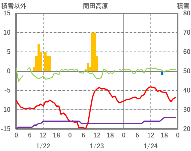| 日 | 時 | 気温 | 降水 | 風向/風速 | 日照 | 積雪 | 降雪 |