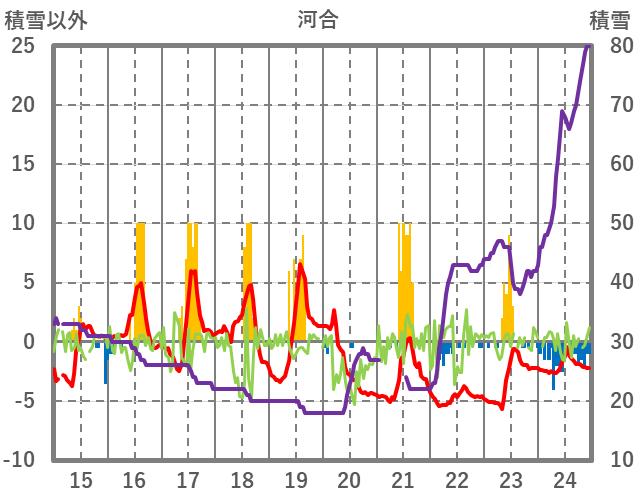 | 日 | 時 | 気温 | 降水 | 風向/風速 | 日照 | 積雪 | 降雪 |