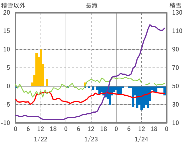 | 日 | 時 | 気温 | 降水 | 風向/風速 | 日照 | 積雪 | 降雪 |