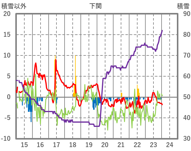 | 日 | 時 | 気温 | 降水 | 風向/風速 | 日照 | 積雪 | 降雪 |