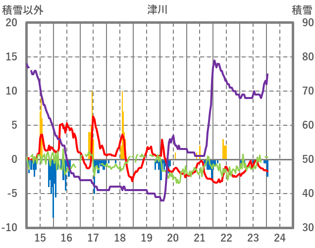 | 日 | 時 | 気温 | 降水 | 風向/風速 | 日照 | 積雪 | 降雪 |