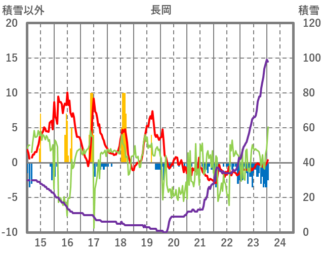 | 日 | 時 | 気温 | 降水 | 風向/風速 | 日照 | 積雪 | 降雪 |