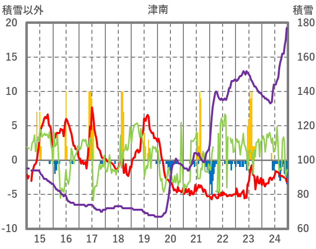 | 日 | 時 | 気温 | 降水 | 風向/風速 | 日照 | 積雪 | 降雪 |