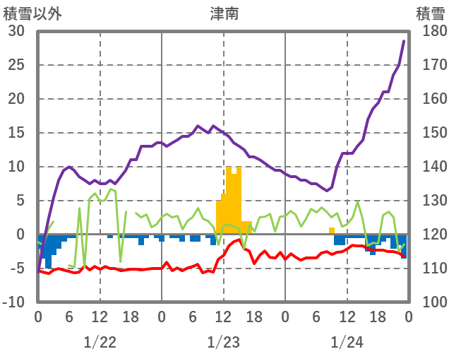 | 日 | 時 | 気温 | 降水 | 風向/風速 | 日照 | 積雪 | 降雪 |