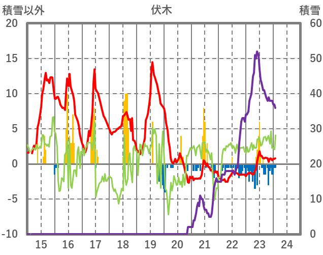 | 日 | 時 | 気温 | 降水 | 風向/風速 | 日照 | 積雪 | 降雪 |