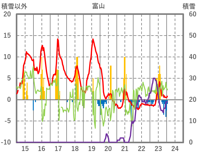 | 日 | 時 | 気温 | 降水 | 風向/風速 | 日照 | 積雪 | 降雪 |