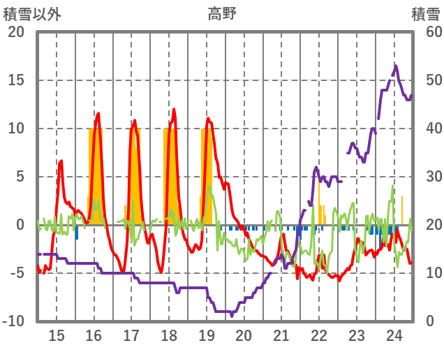 | 日 | 時 | 気温 | 降水 | 風向/風速 | 日照 | 積雪 | 降雪 |