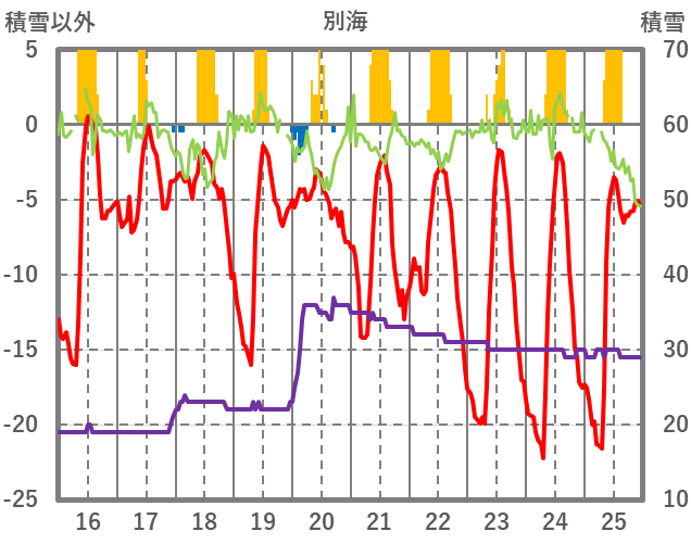 | 日 | 時 | 気温 | 降水 | 風向/風速 | 日照 | 積雪 | 降雪 |