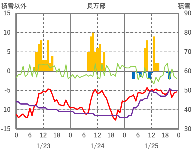 | 日 | 時 | 気温 | 降水 | 風向/風速 | 日照 | 積雪 | 降雪 |