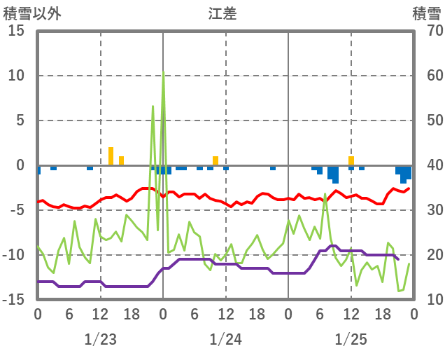 | 日 | 時 | 気温 | 降水 | 風向/風速 | 日照 | 積雪 | 降雪 |