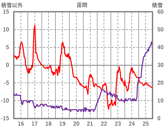 | 日 | 時 | 気温 | 降水 | 風向/風速 | 日照 | 積雪 | 降雪 |