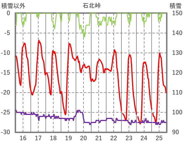 | 日 | 時 | 気温 | 降水 | 風向/風速 | 日照 | 積雪 | 降雪 |