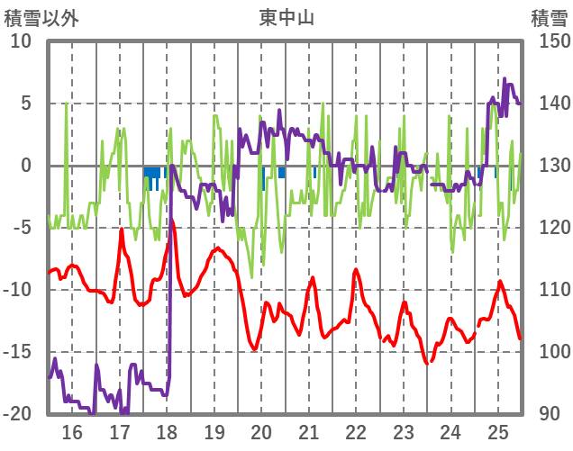 | 日 | 時 | 気温 | 降水 | 風向/風速 | 日照 | 積雪 | 降雪 |
