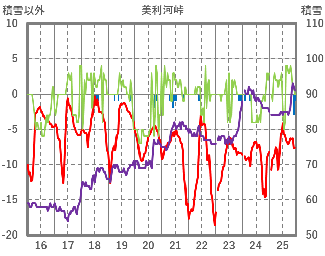 | 日 | 時 | 気温 | 降水 | 風向/風速 | 日照 | 積雪 | 降雪 |