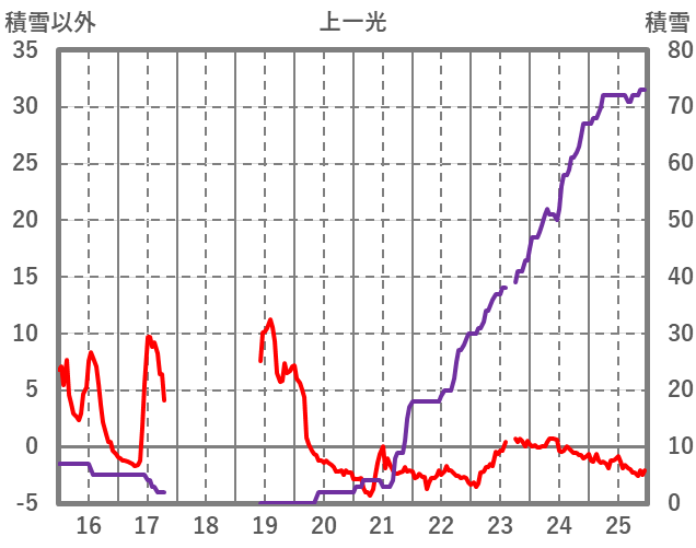 | 日 | 時 | 気温 | 降水 | 風向/風速 | 日照 | 積雪 | 降雪 |