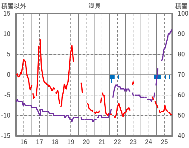 | 日 | 時 | 気温 | 降水 | 風向/風速 | 日照 | 積雪 | 降雪 |
