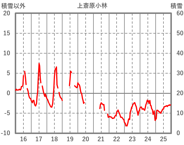 | 日 | 時 | 気温 | 降水 | 風向/風速 | 日照 | 積雪 | 降雪 |