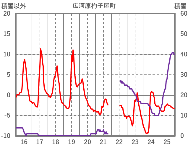 | 日 | 時 | 気温 | 降水 | 風向/風速 | 日照 | 積雪 | 降雪 |