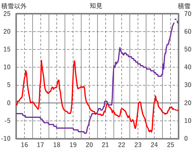 | 日 | 時 | 気温 | 降水 | 風向/風速 | 日照 | 積雪 | 降雪 |