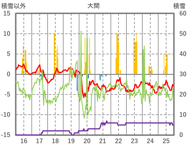 | 日 | 時 | 気温 | 降水 | 風向/風速 | 日照 | 積雪 | 降雪 |