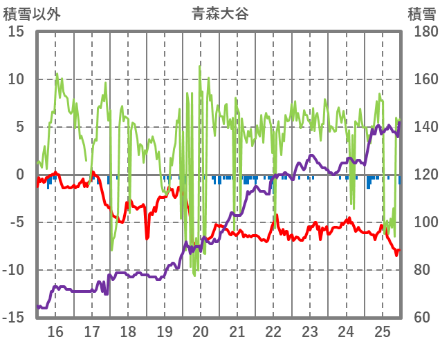| 日 | 時 | 気温 | 降水 | 風向/風速 | 日照 | 積雪 | 降雪 |