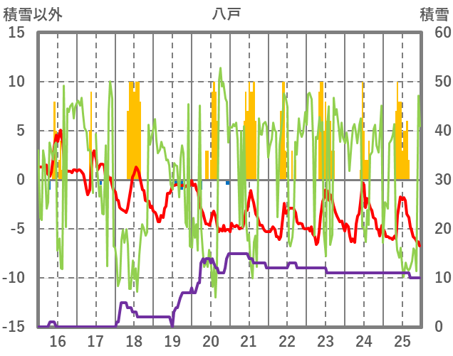 | 日 | 時 | 気温 | 降水 | 風向/風速 | 日照 | 積雪 | 降雪 |